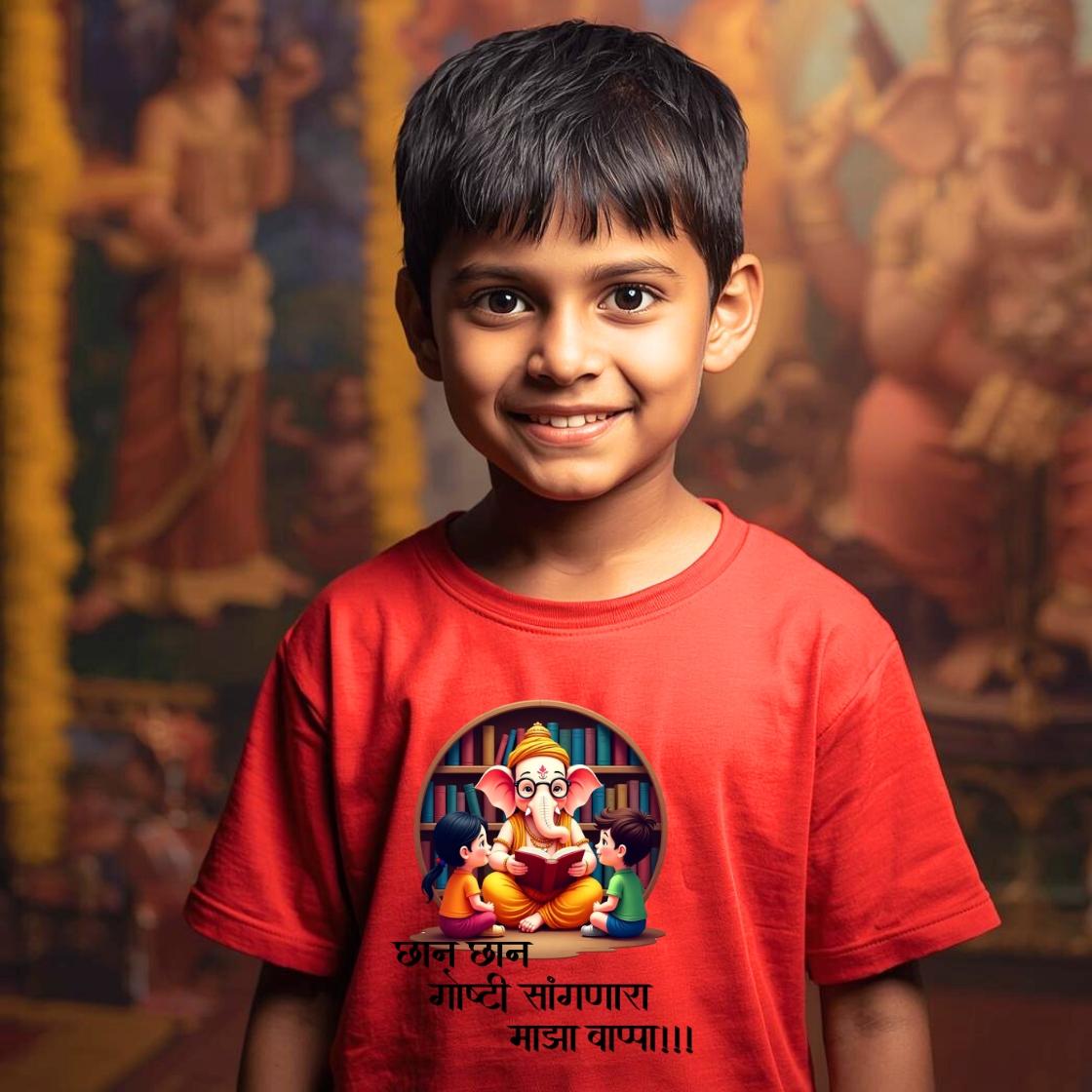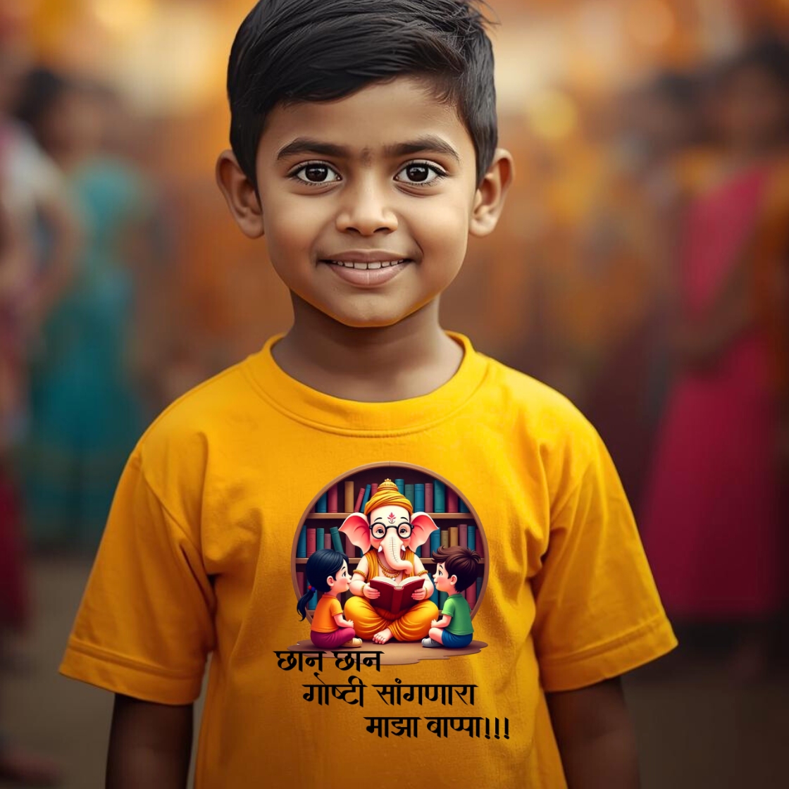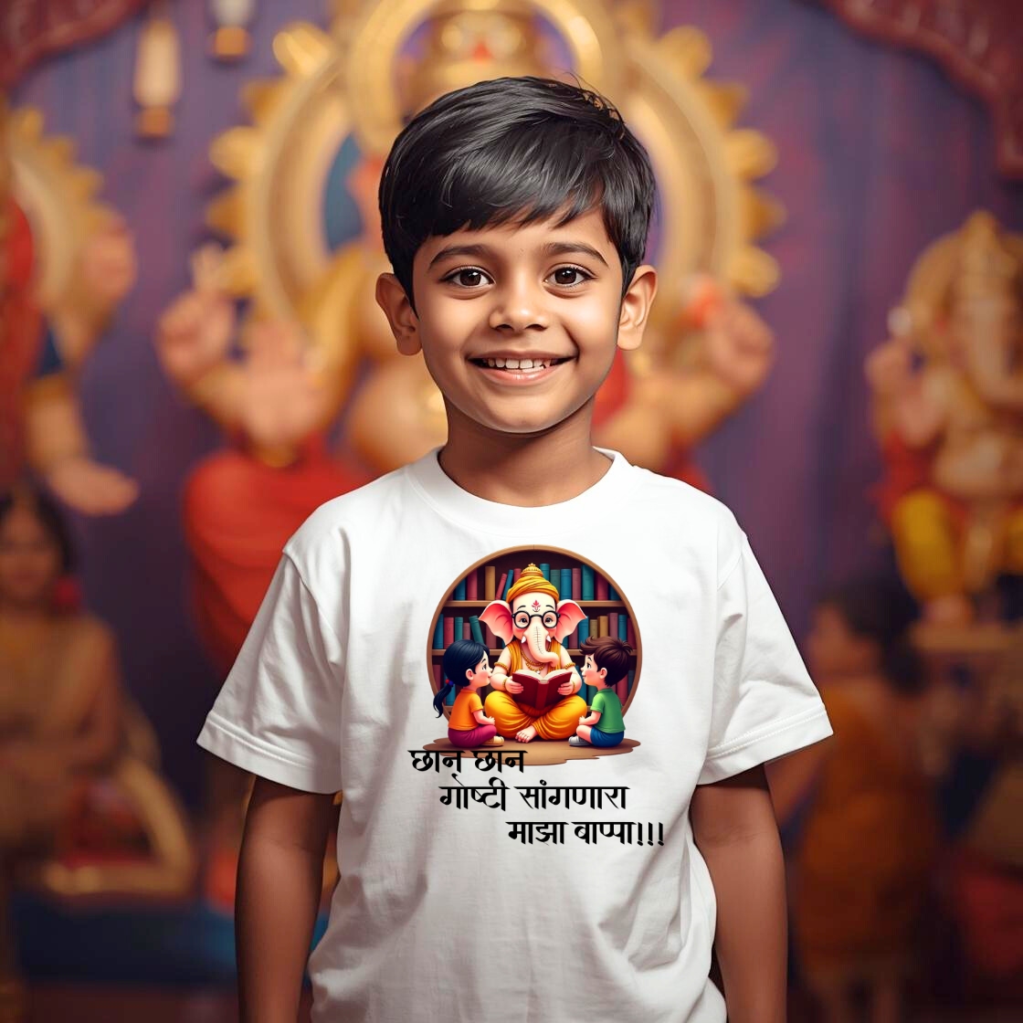 Ganesh 10, White , Yellow and Red also available , Chan chan gosti sanganara bappa, Unisex ( Men’s, Women’s, and for kids) T- Shirt . 100% cotton, 180GSM, Round Neck, Half Sleeves.