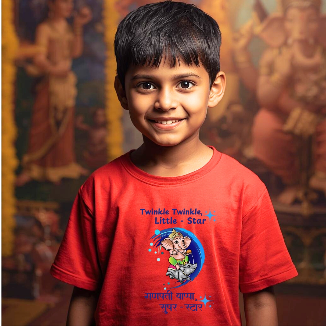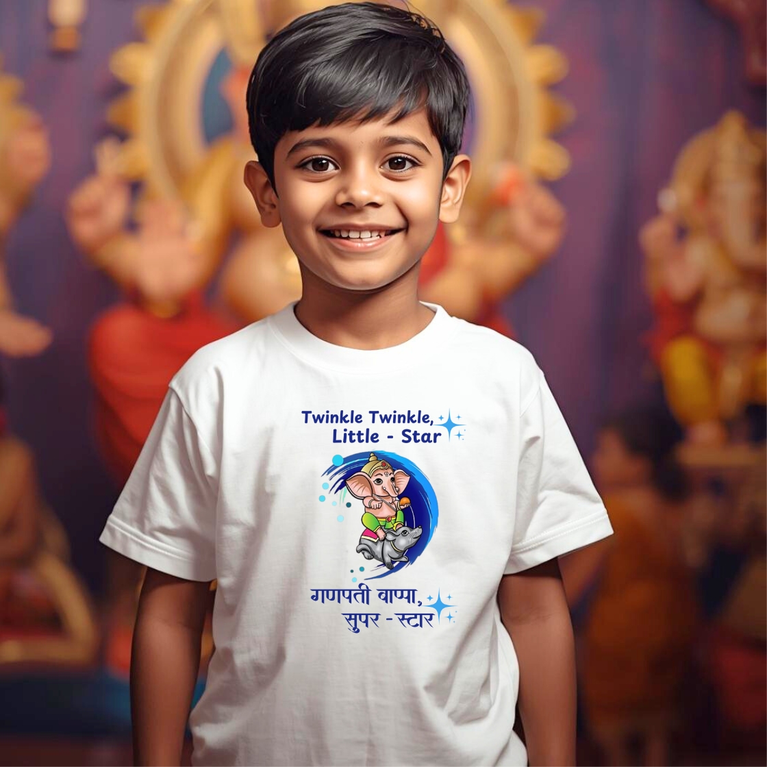 Ganesh 12, White , Yellow and Red also available , Twinkle Twinkle little star, Unisex ( kids) T- Shirt . 100% cotton, 180GSM, Round Neck, Half Sleeves.