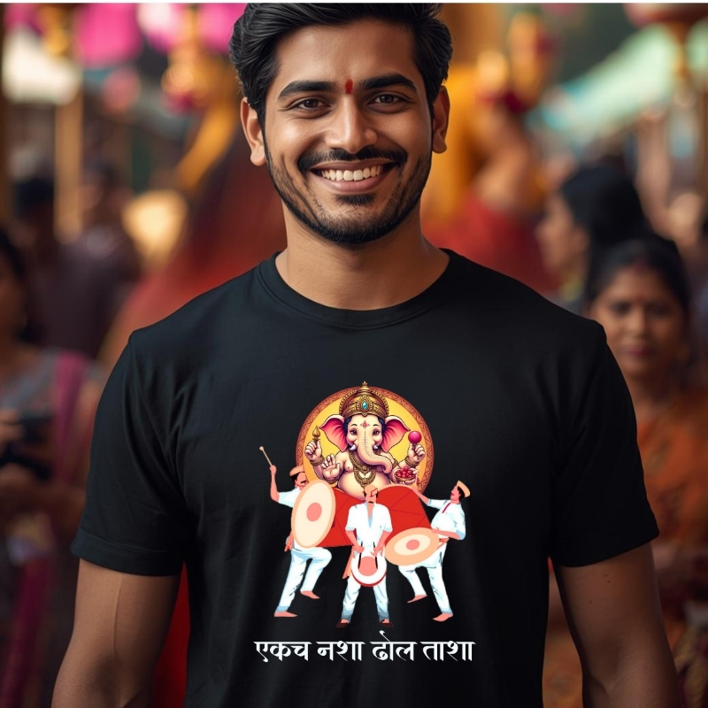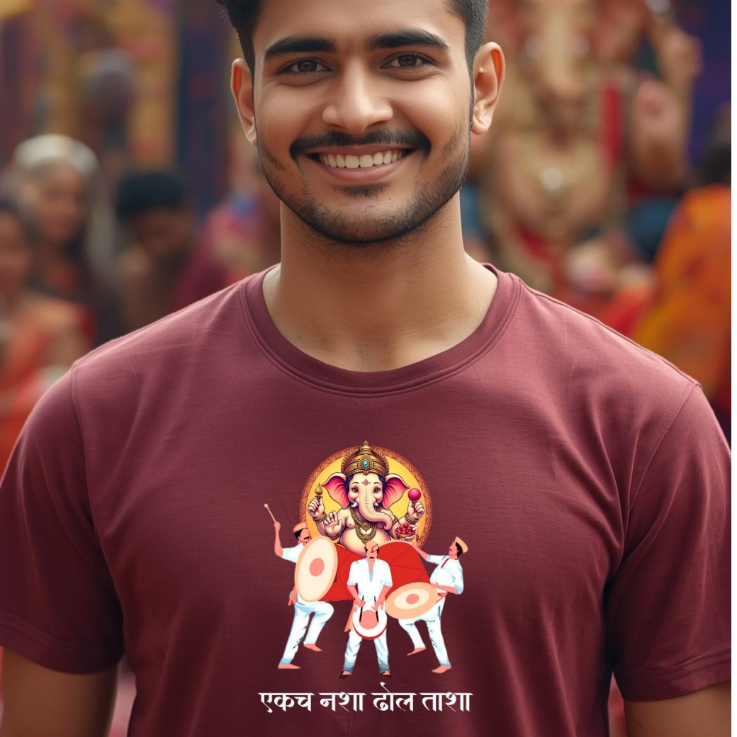 Ganesh 28, White, Blue and Maroon available , Vakratund, Unisex ( Ladies and Gents) T- Shirt . 100% cotton, 180GSM, Round Neck, Half Sleeves.
