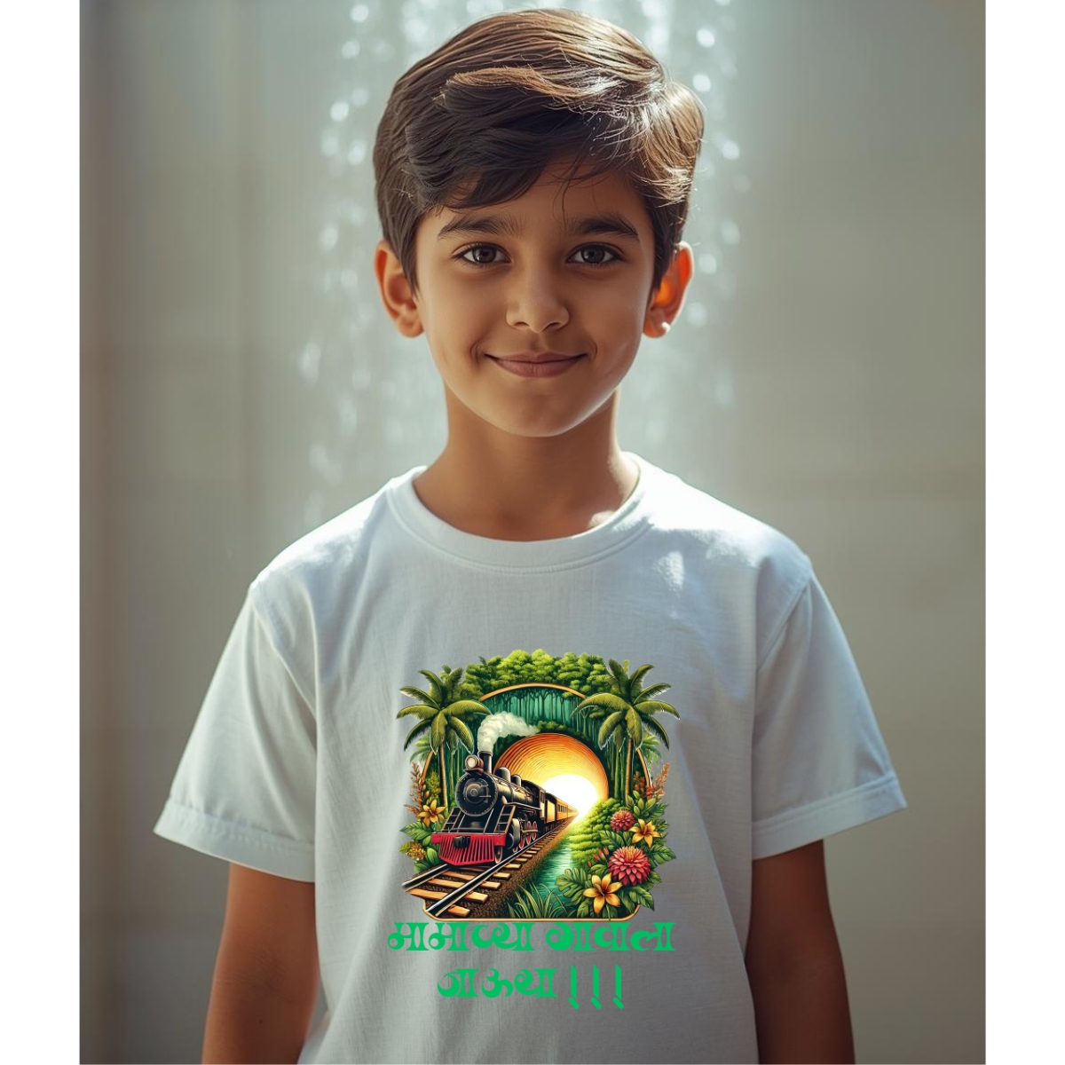 Kids 4 , White , Yellow and Red also available , Mama chya gavala jauya, Unisex (kids) T- Shirt . 100% cotton, 180GSM, Round Neck, Half Sleeves.