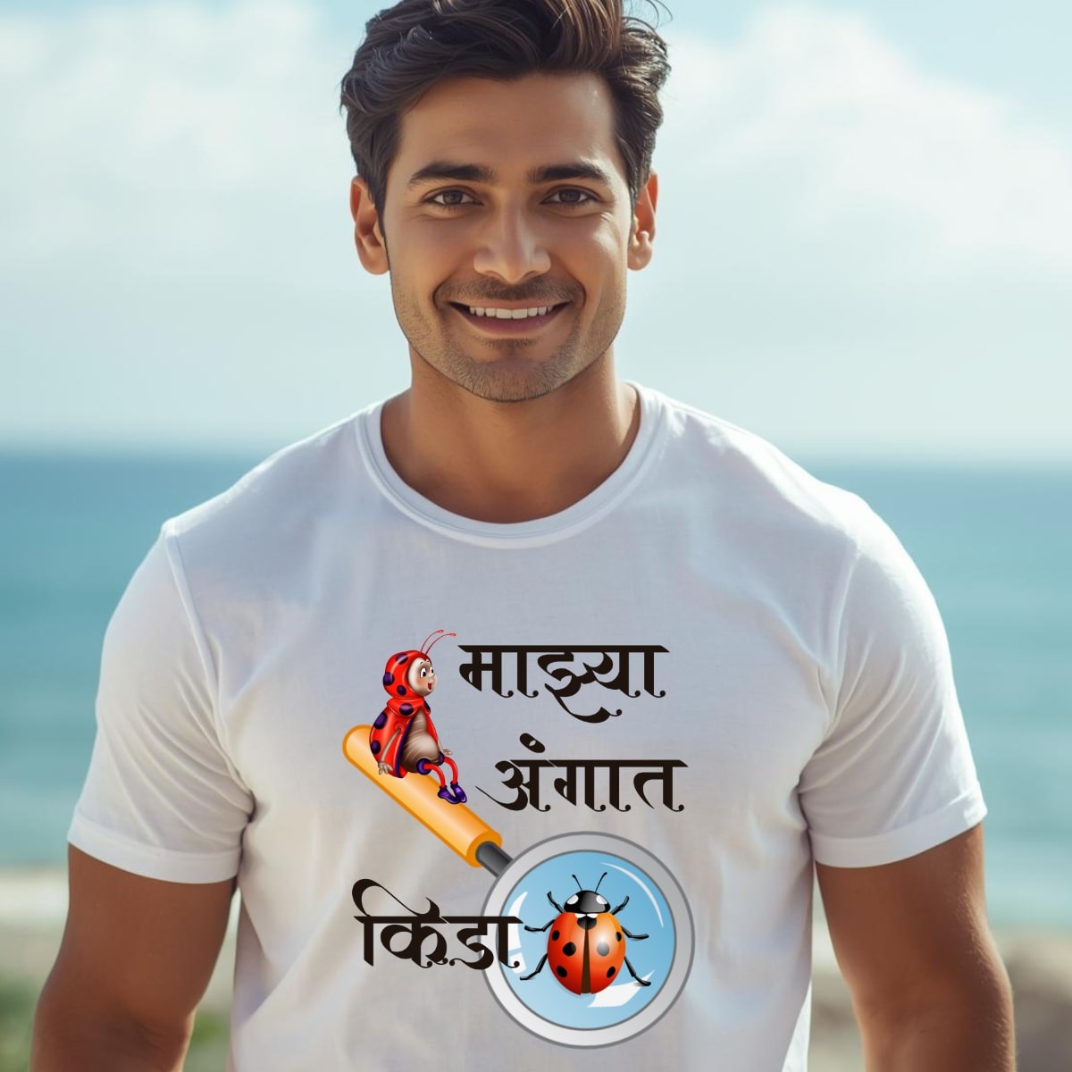 Marathi 1 Men’s , White and Yellow also available , “Mazya angat kida” Unisex (Men’s) T- Shirt . 100% cotton, 180GSM, Round Neck, Half Sleeves.