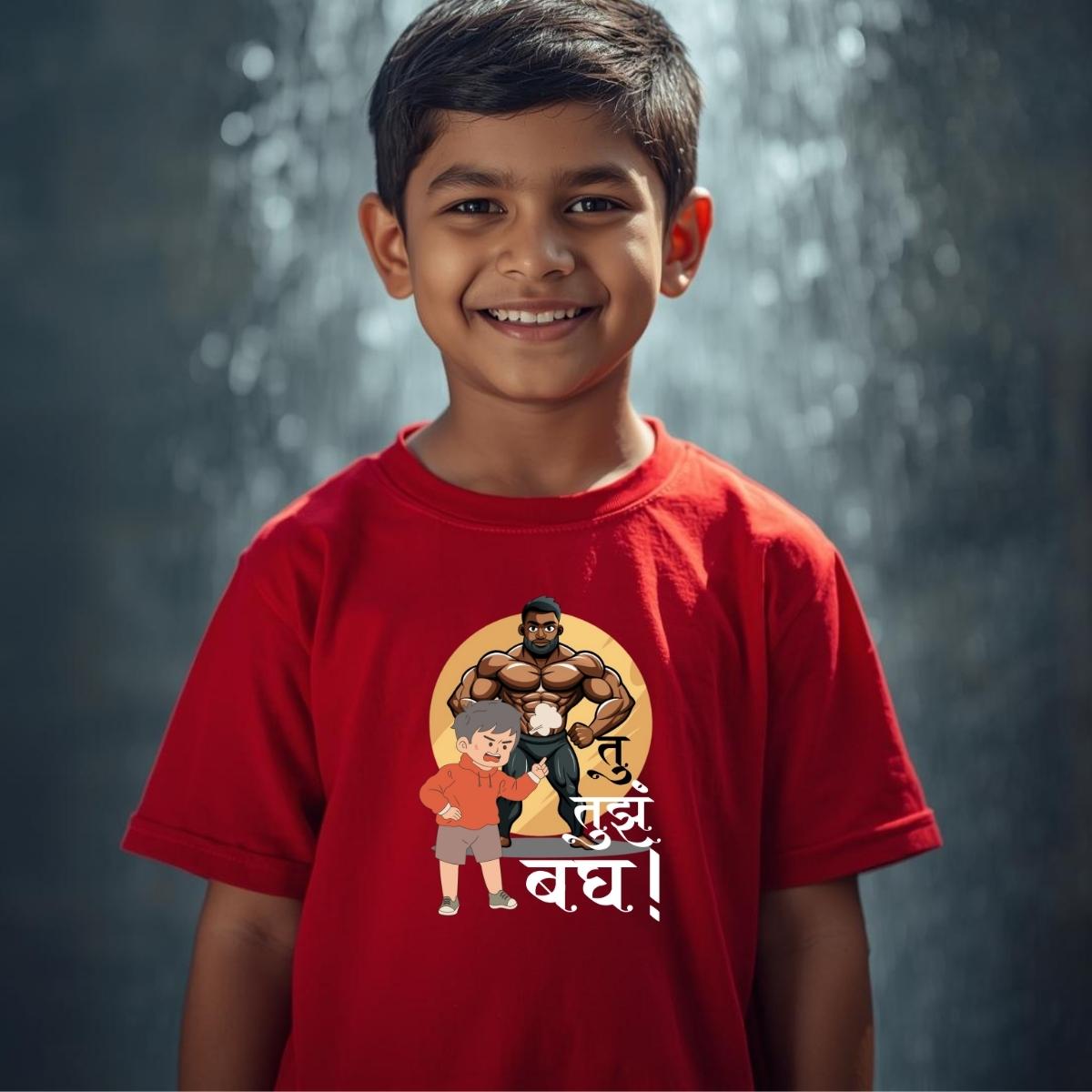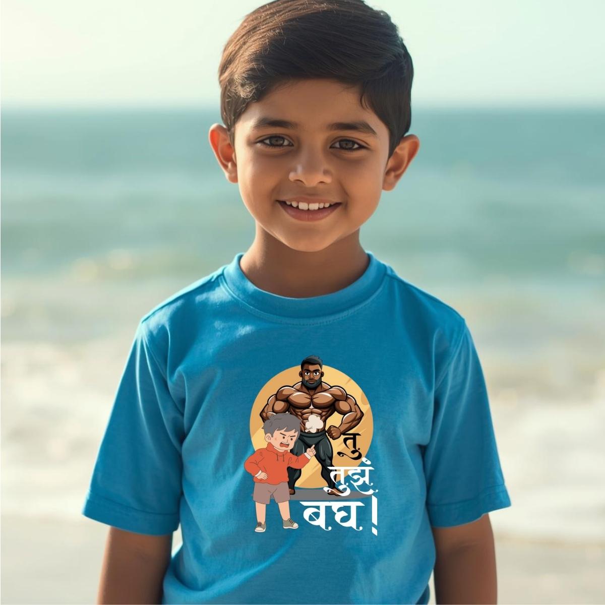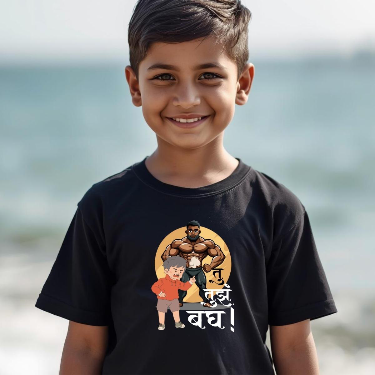 Marathi 87 Kids , Black, Blue, Sky Blue and Red also available , “Tu tuz bagh” Unisex (kids) T- Shirt . 100% cotton, 180GSM, Round Neck, Half Sleeves.